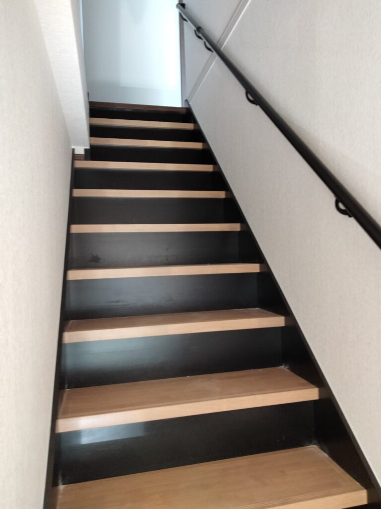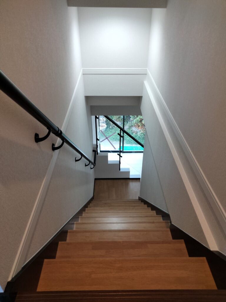 握りやすく掴みやすい形状の手すりを新設。夜間でも足元が見えやすく、ご家族全員が安心して昇り降りできるバリアフリーな設計に配慮しました。 機能性と美しさを両立させ、住まいのアクセントとなる象徴的な階段へと進化しています。
