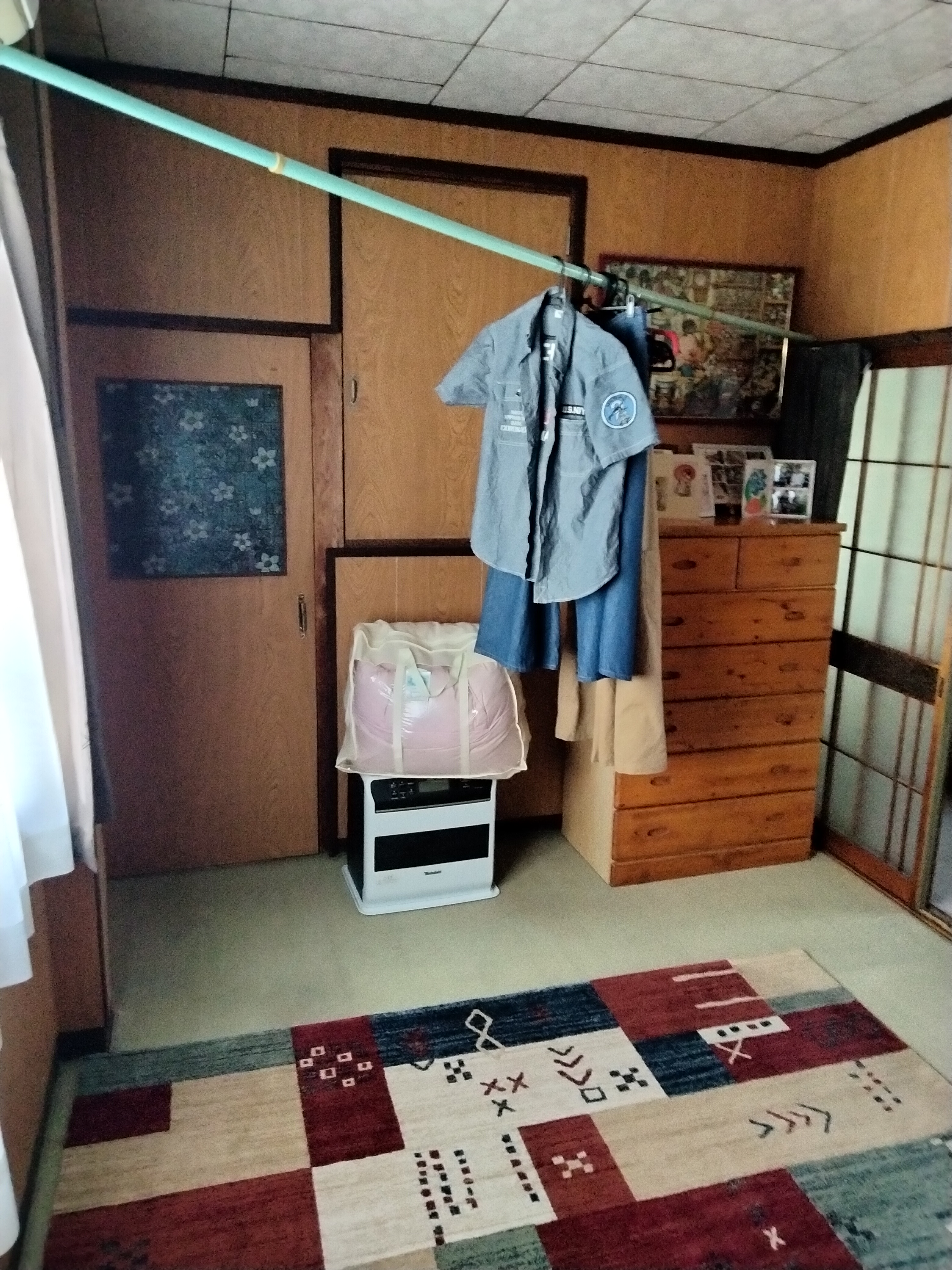 砂壁や古くなった天井板を、白を基調としたクロス仕上げに刷新。光を効率よく反射させ、部屋全体が以前よりも広く、明るく感じられるよう工夫しました。